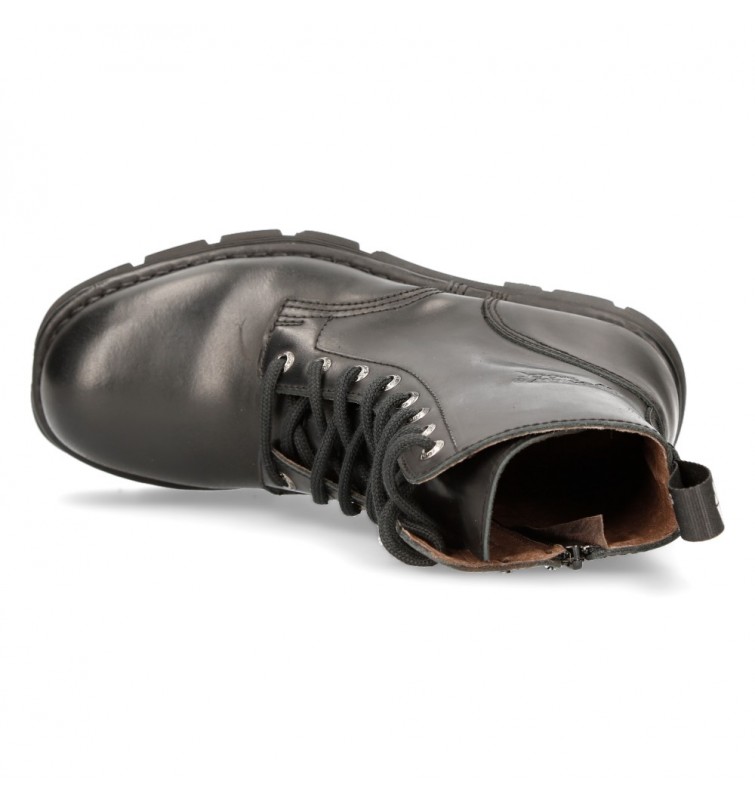 Botines de la colección Newmili de New Rock. Fabricados en cuero, contienen un cordón ajustable que proporcionan facilidad para ponérselas y quitárselas, y gran adaptabilidad al pie. Tienen la suela Comfort característica de New Rock.