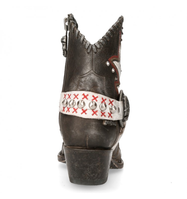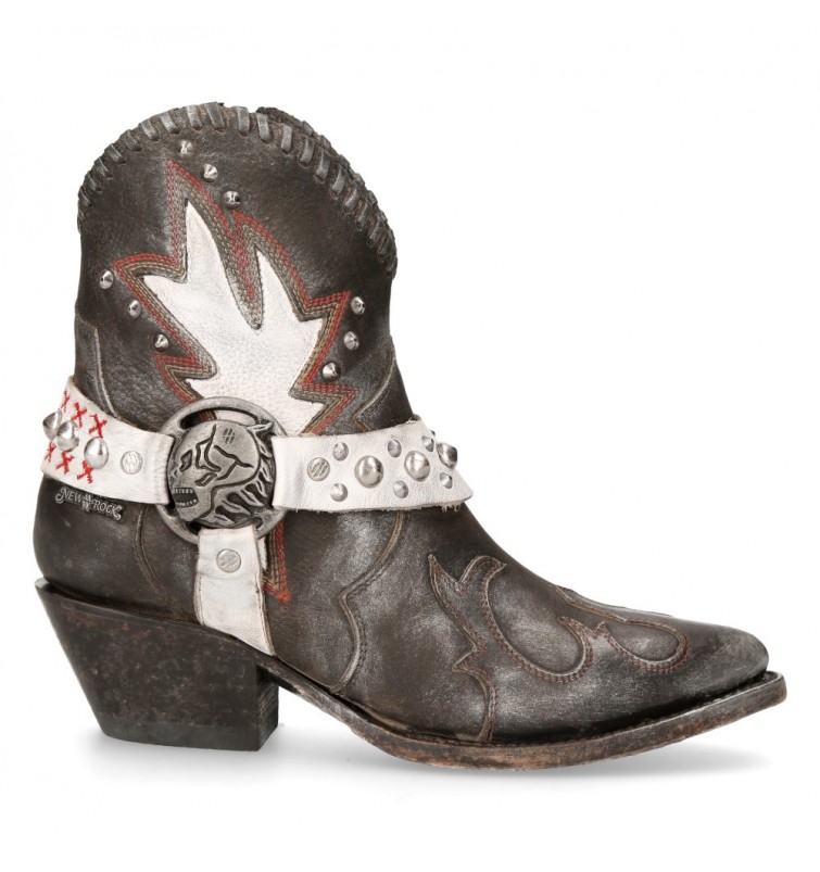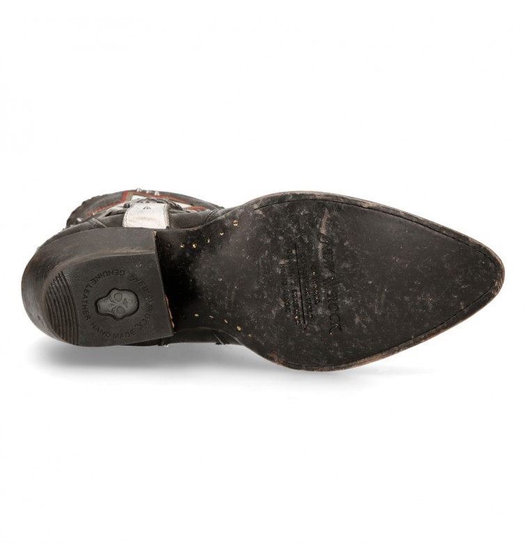 Botines de la colección Dallas de New Rock. Fabricados en cuero y piel de serpiente, son elásticos para proporcionar facilidad al ponerselas y quitarselas y gran adaptabilidad al pie. Estos botines tienen tacón de acero característico de New Rock.