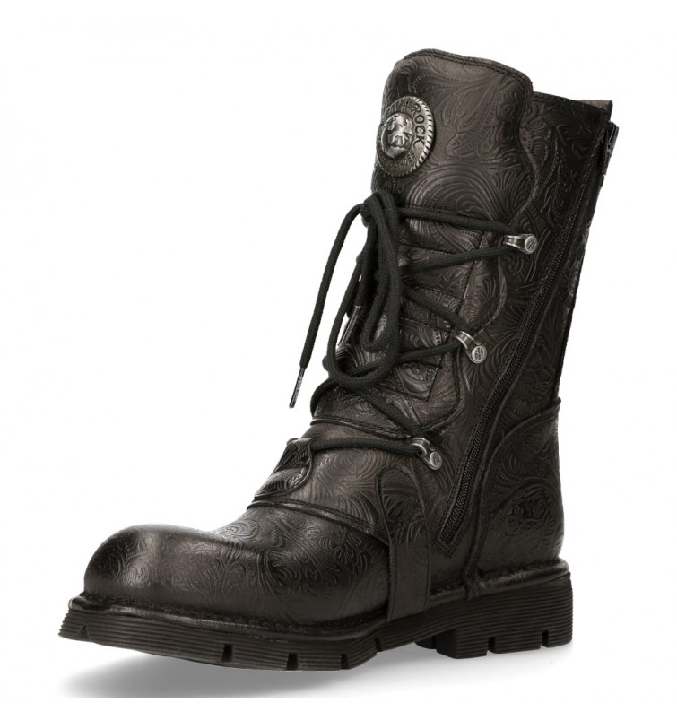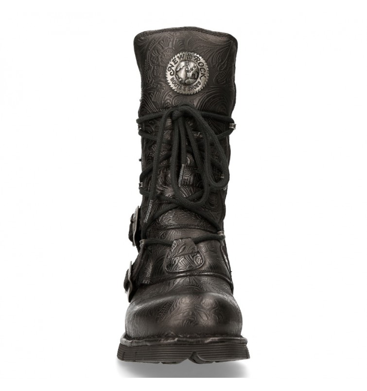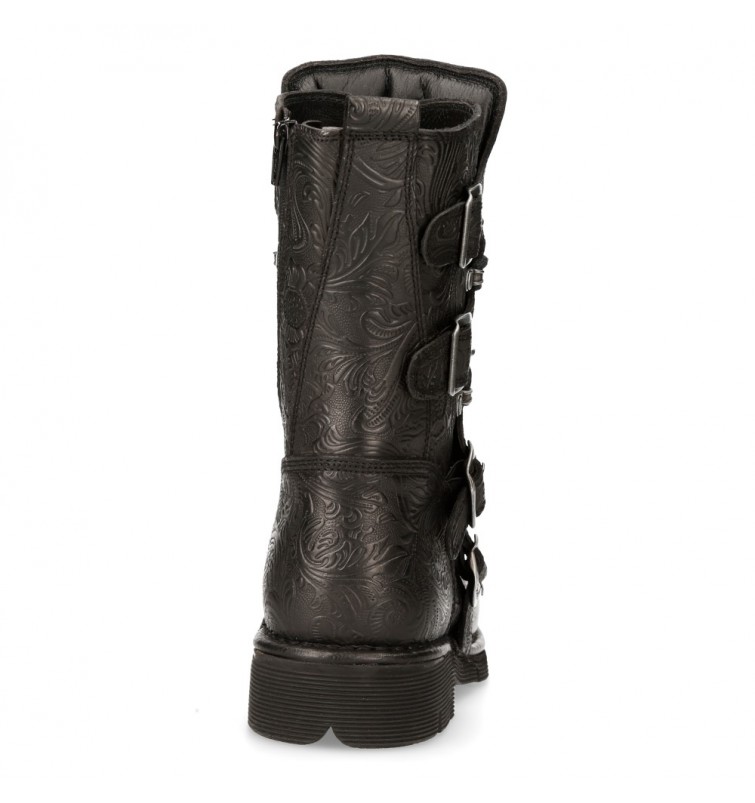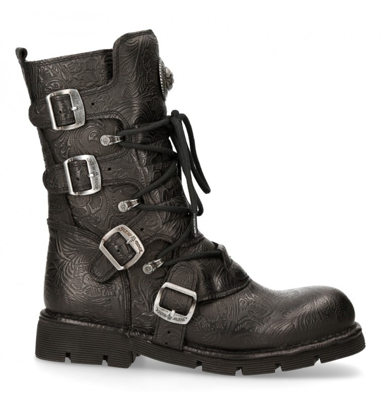 Botas de la colección Newmili de New Rock. Fabricados en cuero, contienen un cordón ajustable y cuatro correas con hebillar metálicas que proporcionan facilidad para ponérselas y quitárselas, y gran adaptabilidad al pie. Tienen la suela Comfort característica de New Rock.