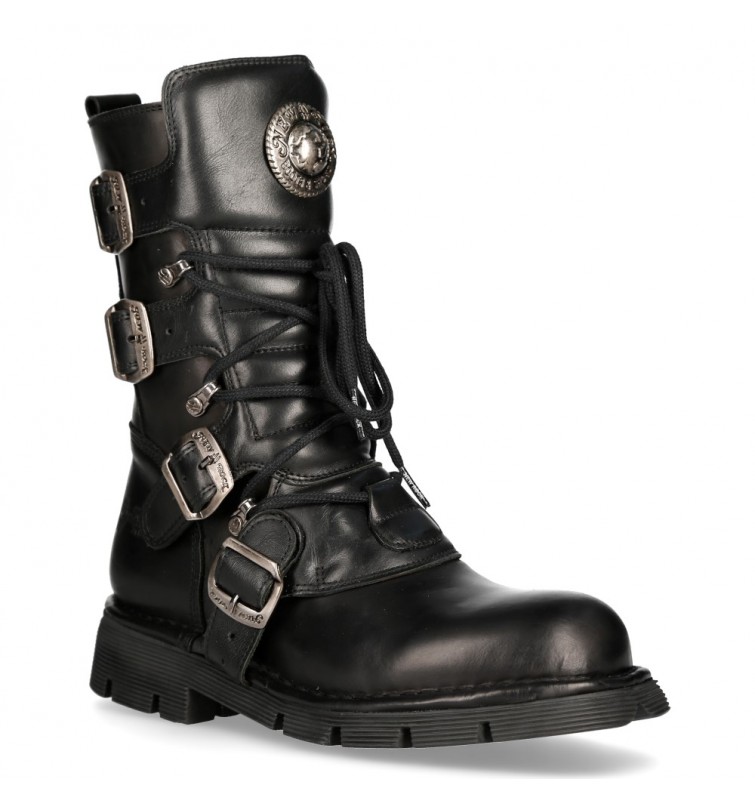 Botas de la colección Newmili de New Rock. Fabricados en cuero, contienen un cordón ajustable y cuatro correas con hebillar metálicas que proporcionan facilidad para ponérselas y quitárselas, y gran adaptabilidad al pie. Tienen la suela Comfort característica de New Rock.